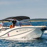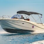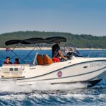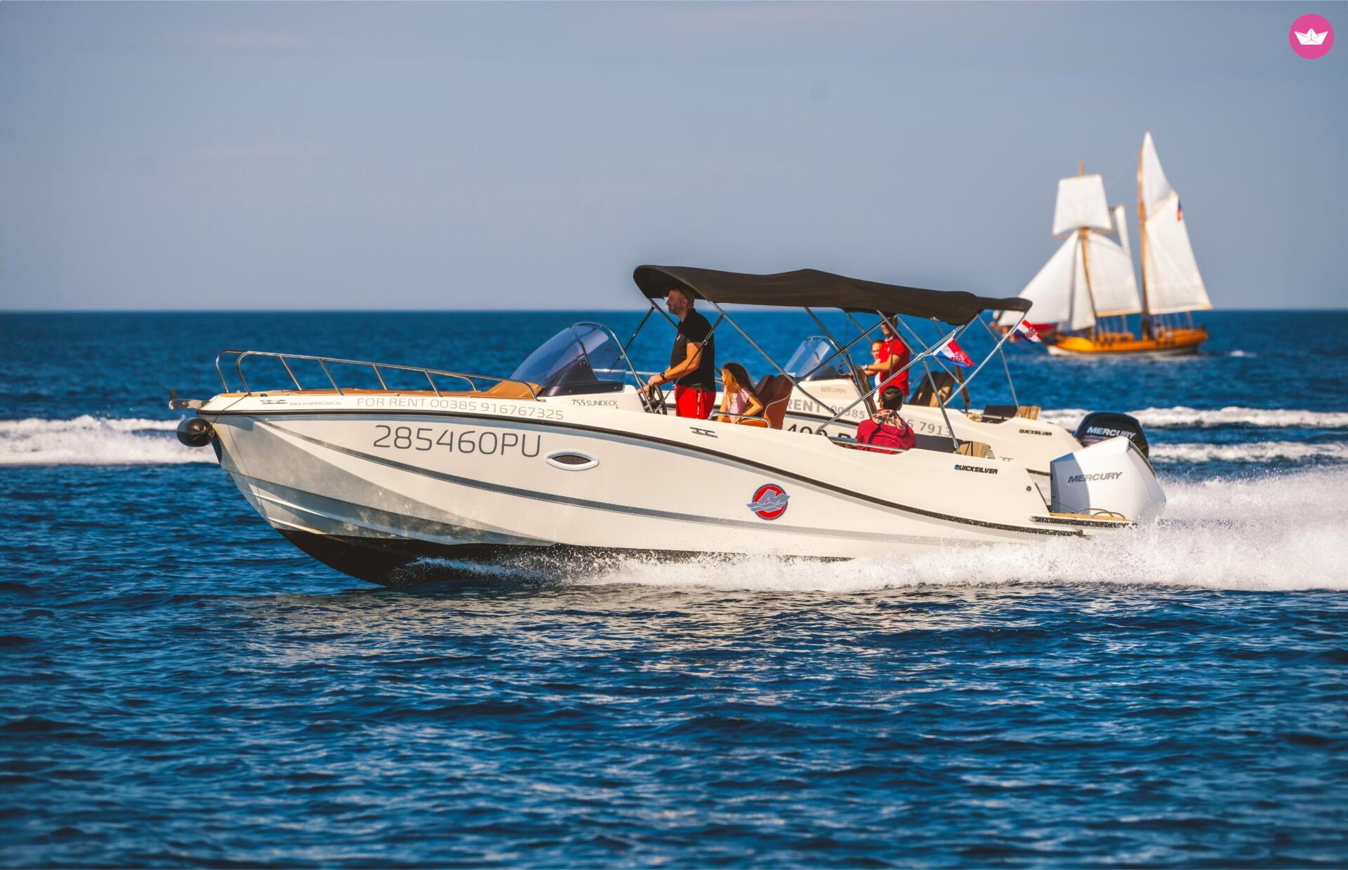 A new sports boat (speedboat) in our offer for season 2024, with a beautiful V8 Mercury white seria engine of 250hp and extremely low fuel consumption for that type of engine and power, which leaves no one indifferent. You simply have to try this combination of a sports boat and your vacation to explore Istria and around area. The speedboat is maximally equipped with safety equipment, navigation equipment and other equipment that simply guarantees enjoyment of driving and exploring the surrounding coast and islands. The speedboat accommodates 9 people. Fuel is extra, not included. Try this combination, I guarantee you won’t regret it… see you soon!…. Thank you.